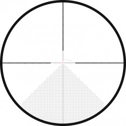 Сетка прицела расположена в первой фокальной плоскости, что позволяет сохранять правильные пропорции при любом увеличении. Это означает, что размеры сетки остаются масштабируемыми, обеспечивая точность прицеливания на всех дистанциях.