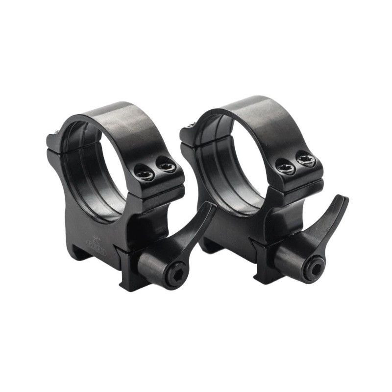 Кольца оснащены удобным быстросъемным рычажным механизмом, который позволяет легко установить или снять прицел всего одним движением. Это особенно полезно в полевых условиях, где требуется оперативная замена оборудования без использования дополнительных инструментов.