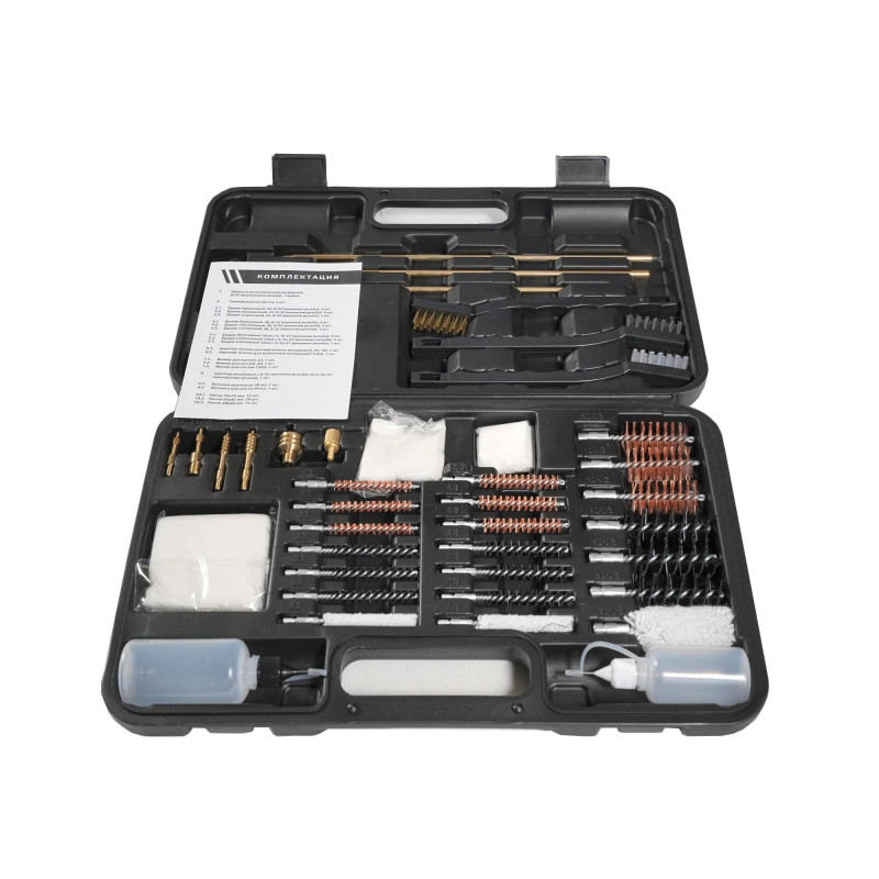 Набор для чистки ARKON универсальный, 36 предметов, предназначен для ухода за оружием трёх калибров: .22, .30 и 12GA. Это удобное решение для владельцев оружия, обеспечивающее полный цикл обслуживания: от механической чистки до нанесения масла.