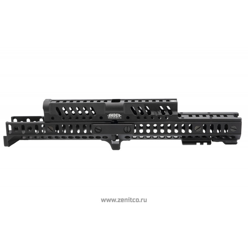 Предназначен для замены штатного цевья на карабинах АК и их модификациях с длиной ствола не менее 415 мм. Он обеспечивает улучшенную эргономику, повышает функциональность оружия и позволяет устанавливать дополнительное оборудование благодаря направляющим Базис.