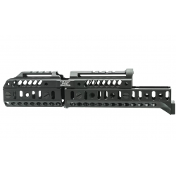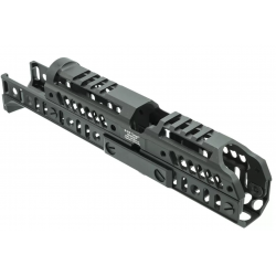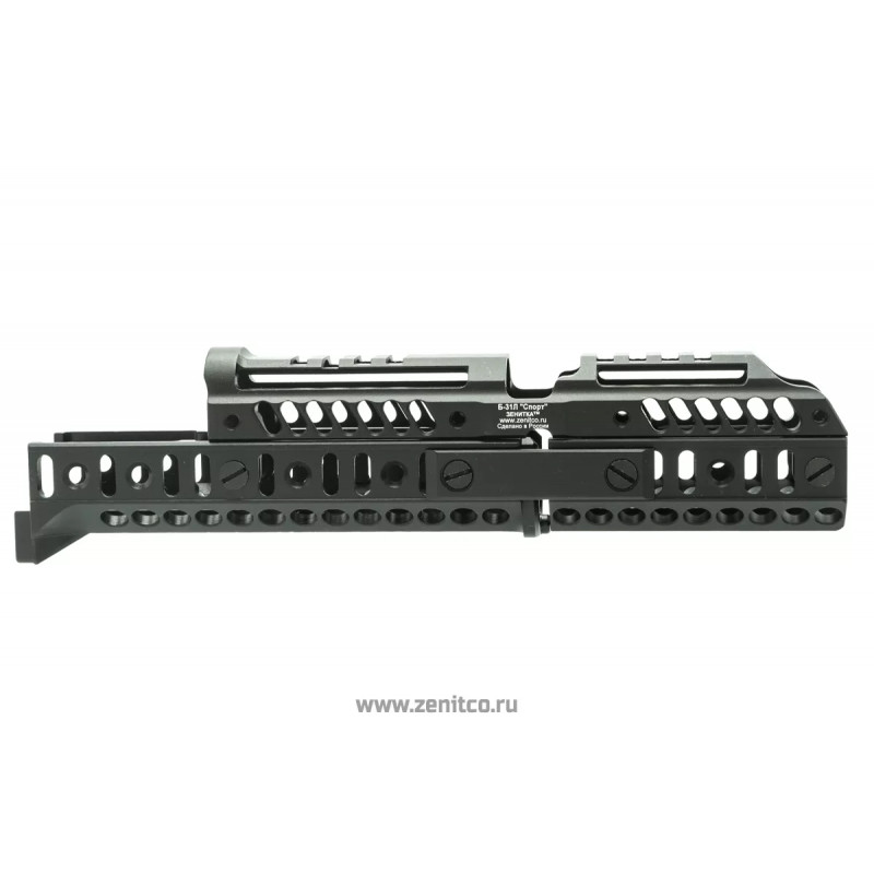 Цевье оснащено направляющей Базис, которая позволяет крепить различные аксессуары: кронштейны, формирующие планки Пикатинни, антабки, передние рукоятки, фиксаторы провода и другие элементы. Это делает комплект универсальным решением для тех, кто хочет настроить оружие под свои задачи.