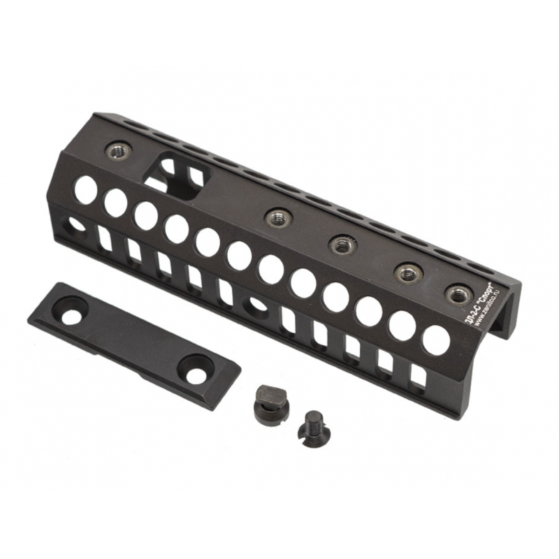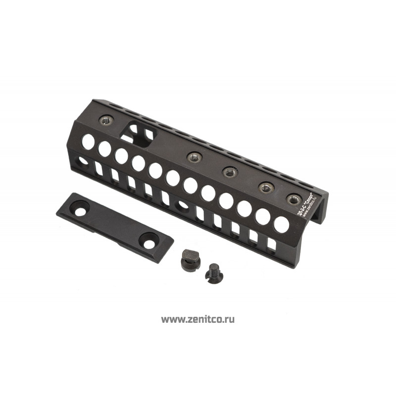 Кронштейн формирует направляющую базис с трех сторон, что позволяет устанавливать дополнительные аксессуары. Среди них: планки Пикатинни, антабки, упоры, рукоятки, накладки и фиксаторы провода. Это значительно расширяет возможности настройки и улучшения функциональности оружия, предоставляя пользователю больше гибкости и удобства.