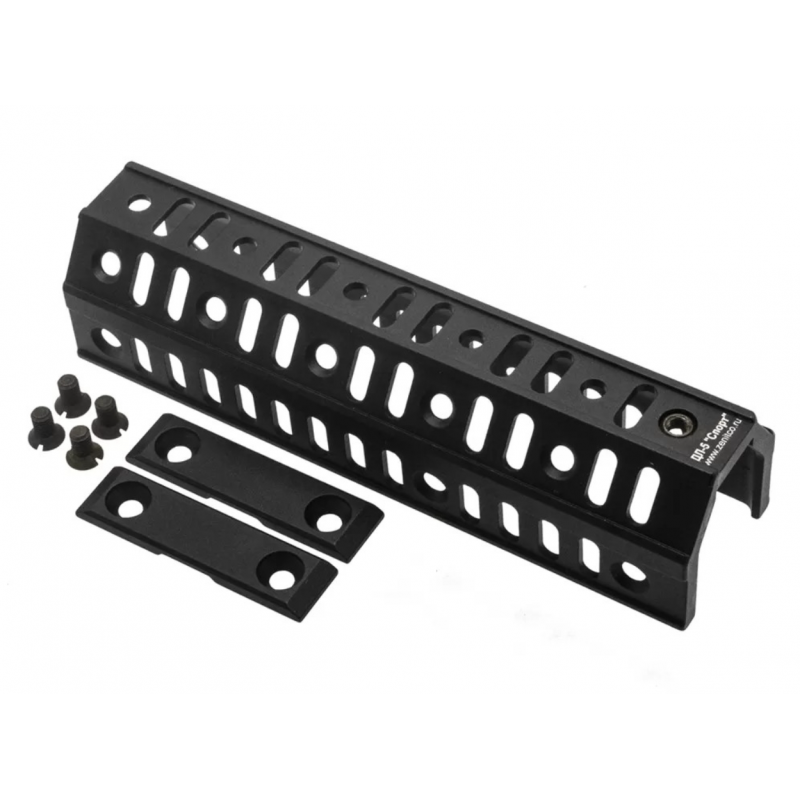 Изделие оснащено направляющей «Базис», которая служит посадочным местом для установки совместимых аксессуаров. Это упрощает процесс модернизации оружия и повышает его универсальность.