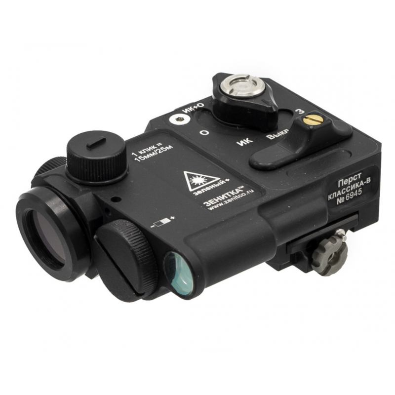 «Перст Классика-В» оснащен двумя лазерными модулями: зеленым с длиной волны 520 нм и инфракрасным (ИК) с длиной волны 850 нм. Зеленый лазер отлично подходит для визуального указания цели, а ИК-лазер и осветитель обеспечивают незаметность в темное время суток при использовании с приборами ночного видения. Эффективная дальность действия зеленого и ИК-лучей достигает 1000 метров, что делает прибор универсальным для различных задач.