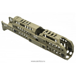 Цевье оснащено направляющей Базис, которая позволяет крепить различные аксессуары: кронштейны, формирующие планки Пикатинни, антабки, передние рукоятки, фиксаторы провода и другие элементы. Это делает комплект универсальным решением для тех, кто хочет настроить оружие под свои задачи.