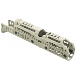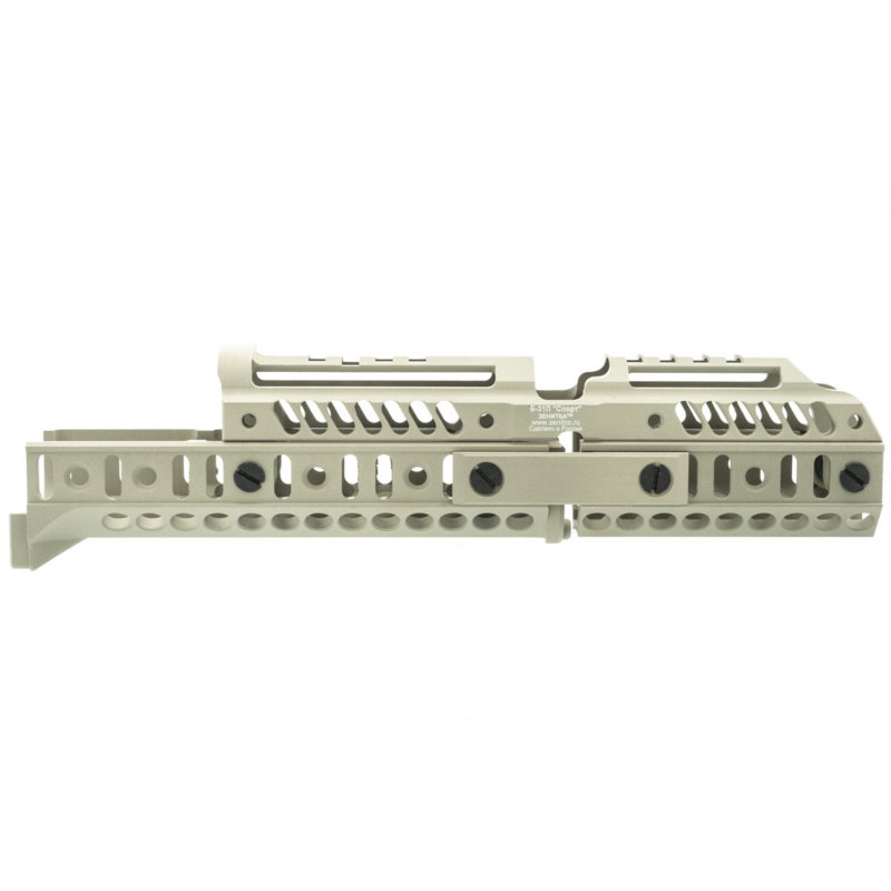 Цевье оснащено направляющей Базис, которая позволяет крепить различные аксессуары: кронштейны, формирующие планки Пикатинни, антабки, передние рукоятки, фиксаторы провода и другие элементы. Это делает комплект универсальным решением для тех, кто хочет настроить оружие под свои задачи.