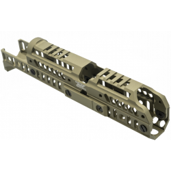 Цевье оснащено направляющей Базис, которая позволяет крепить различные аксессуары: кронштейны, формирующие планки Пикатинни, антабки, передние рукоятки, фиксаторы провода и другие элементы. Это делает комплект универсальным решением для тех, кто хочет настроить оружие под свои задачи.