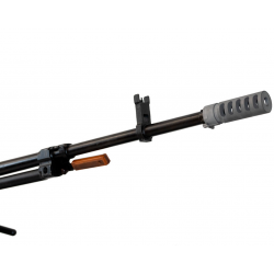 Установить ДТ Утёс можно легко и быстро, заменив штатный пламегаситель. Для монтажа используется резьба пулемёта НСВ Утёс, что исключает необходимость в дополнительных адаптерах или сложных инструментах. В комплекте поставки предусмотрены все необходимые элементы для надежной фиксации: фиксатор оси и шпильки-фиксаторы.