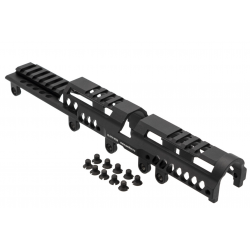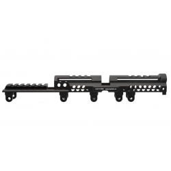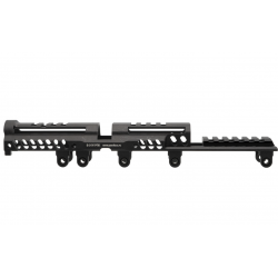 Кронштейн формирует планку Пикатинни над газоотводной трубкой и стволом, что позволяет надежно крепить прицелы и другие аксессуары. При этом конструкция не перекрывает линию прицеливания, оставляя возможность использовать штатные механические прицельные приспособления.