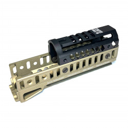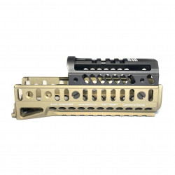Комплект цевья Б-21У (золотой хаки) с накладкой Б-19Н предназначен для тюнинга и удобного размещения обвеса на Сайга-9, TR9 (TR-9 Paradox) и ПП Витязь, добавляя оружию прочную базу под аксессуары без лишнего усложнения установки.