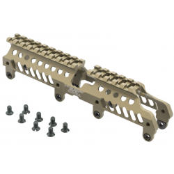 Функциональность: Кронштейн формирует планку Пикатинни над стволом и газовой камерой. Это позволяет устанавливать дополнительные аксессуары, такие как оптические или коллиматорные прицелы, без перекрытия линии механического прицела. Такая конструкция обеспечивает удобство использования и сохраняет стандартные функции оружия.