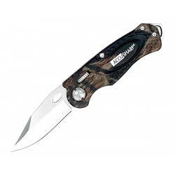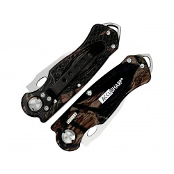 Рукоять ножа выполнена из анодированного алюминиевого сплава, что обеспечивает прочность и легкость конструкции. Камуфляжный дизайн придает изделию стильный внешний вид, а эргономичная форма рукояти гарантирует комфортное использование даже при длительной работе.