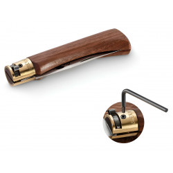Нож оснащен надежным модифицированным замком Viroblock. Этот механизм фиксирует клинок в открытом положении, предотвращая его случайное складывание. Особенность конструкции заключается в удобной блокирующей муфте, расположенной внутри больстера, что позволяет управлять замком одним пальцем. Это делает использование ножа безопасным и комфортным.