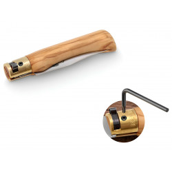 Клинок фиксируется с помощью модифицированного замка Viroblock, который обеспечивает безопасность использования. Муфта, расположенная внутри больстера, предотвращает случайное складывание клинка. Удобное управление одной рукой делает процесс фиксации быстрым и простым.