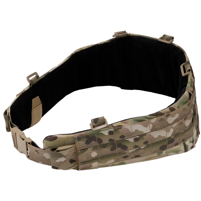 Конструкция пояса оснащена MOLLE стропами, которые позволяют удобно закрепить подсумки, кобуру или другое оборудование. Средняя панель имеет 10 ячеек, а боковые панели – по 7 ячеек, что обеспечивает достаточное пространство для индивидуальной настройки.