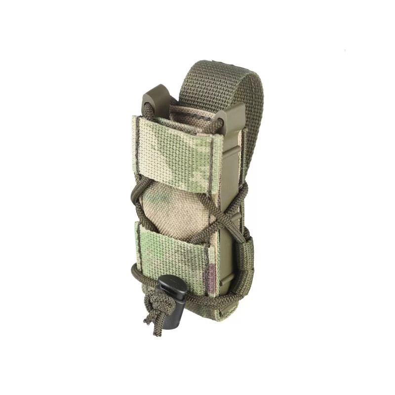 Шнур-утяжка позволяет легко регулировать объём подсумка, обеспечивая плотное прилегание содержимого. Это предотвращает выпадение магазина или других предметов, даже при активных движениях. Такая система также удобна для размещения аксессуаров разного размера.