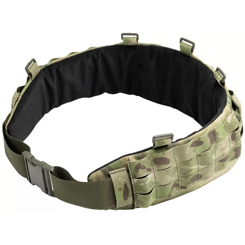 Пояс оснащён системой MOLLE, которая включает среднюю панель с четырьмя рядами строп и две боковые панели с тремя рядами. Это позволяет легко и надёжно закрепить подсумки, чехлы и другие элементы снаряжения, обеспечивая максимальную гибкость в организации оборудования.