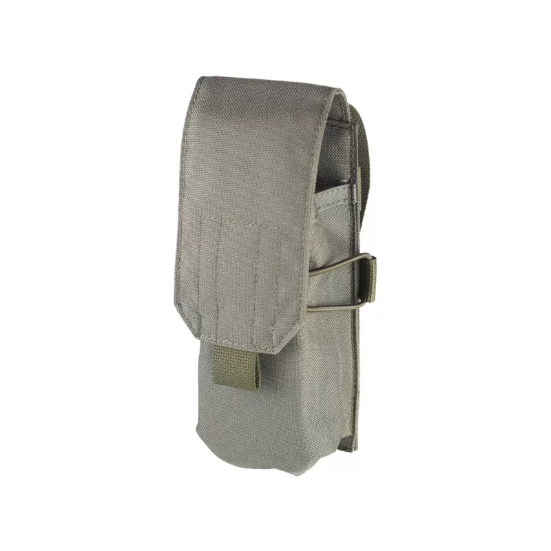 Подсумок оснащен клапаном с липучкой велкро, который надежно закрывает отсек и предотвращает выпадение магазинов. Дополнительно используется утягивающий шок-корд, обеспечивающий плотное прилегание содержимого. Это решение позволяет сохранять магазины в безопасности даже при интенсивных движениях или сложных условиях эксплуатации.