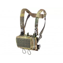 Жилет оснащён открытым подсумком под магазины, который включает три полимерные вставки для удержания магазинов АК/AR. Эти вставки крепятся на велкро, что обеспечивает их надёжную фиксацию. Дополнительную устойчивость магазинов обеспечивают эластичные шнуры с флажками, которые можно при необходимости снять. Внутренние тканевые перегородки помогают организовать пространство, а их съёмность позволяет изменять объём отделения в зависимости от потребностей.