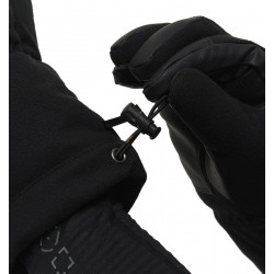 Манжета рукавиц оснащена эластичным шнуром с фиксатором, что позволяет надежно регулировать объем. Это предотвращает попадание холодного воздуха внутрь и обеспечивает плотное прилегание к запястью.