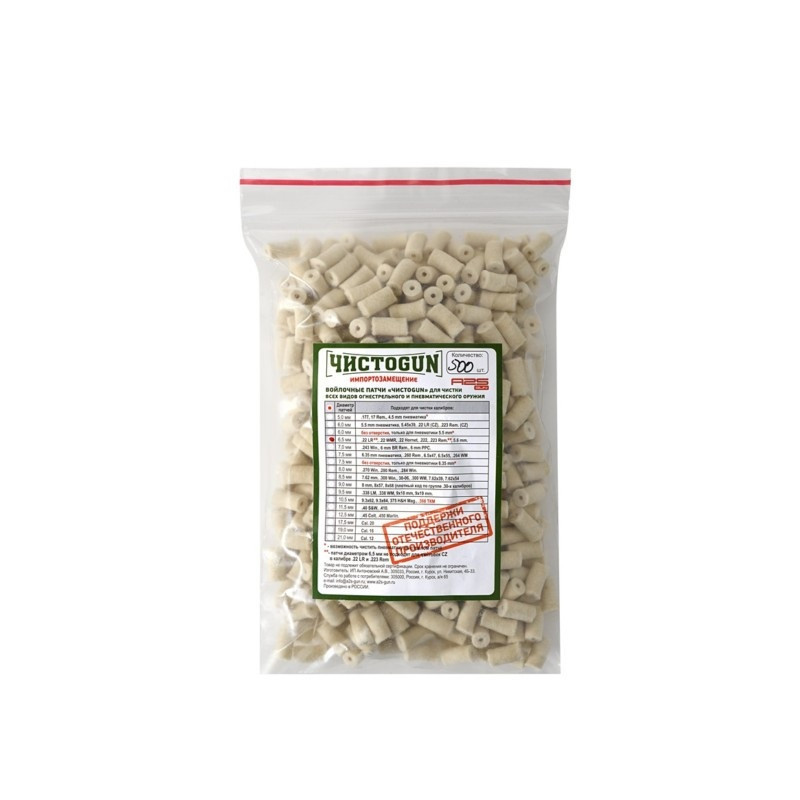 Войлочные патчи калибр 5,6 мм .22/.222/.224, диаметр 6,5 мм, ЧистоGun (500 шт)
