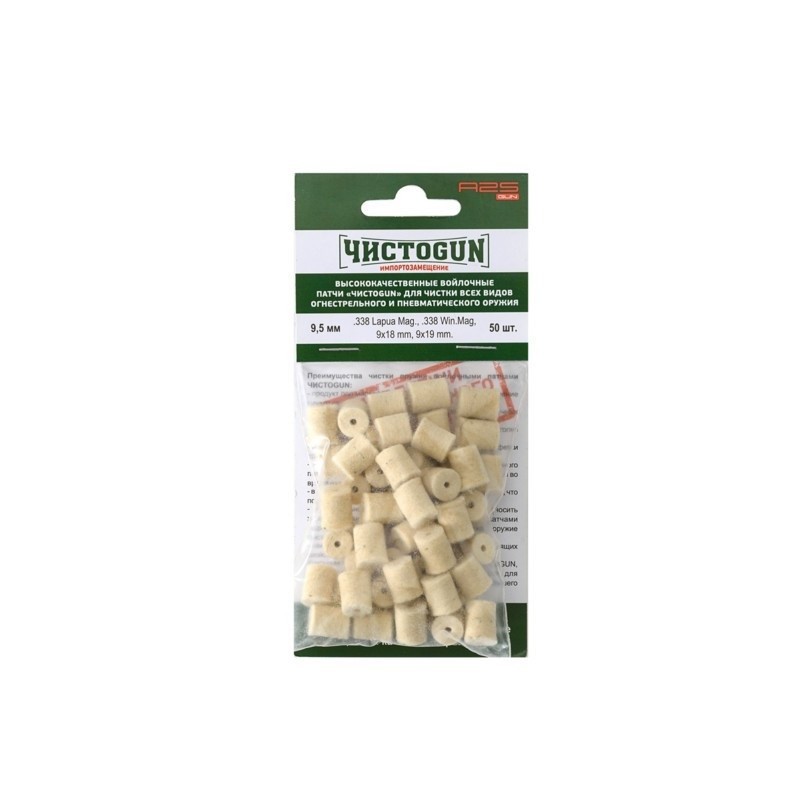 Войлочные патчи калибр .338/9мм/.345ТК диаметр 9,5 мм, ЧистоGun (50 шт)