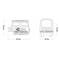 Наверху прицела расположена солнечная батарея, за счёт которой прицел подзаряжается на улице и экономит ресурс обычной батарейки (работает до 50 000 часов).