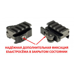 Кронштейн имеет дополнительный механизм, который обеспечивает надёжную фиксацию быстросъёмного механизма в закрытом состоянии.