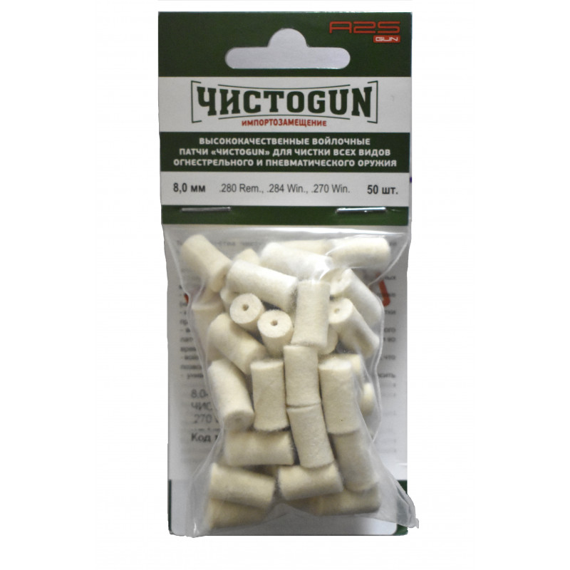 Патчи из войлока высокого качества от бренда ЧИСТОGUN предназначены для чистки оружия, диаметр 8,0 мм. Остатки химии легко и безопасно удаляются за счет высокой впитываемости патчей. Кроме того, это позволяет отлично смазать оружейным маслом нужные детали.