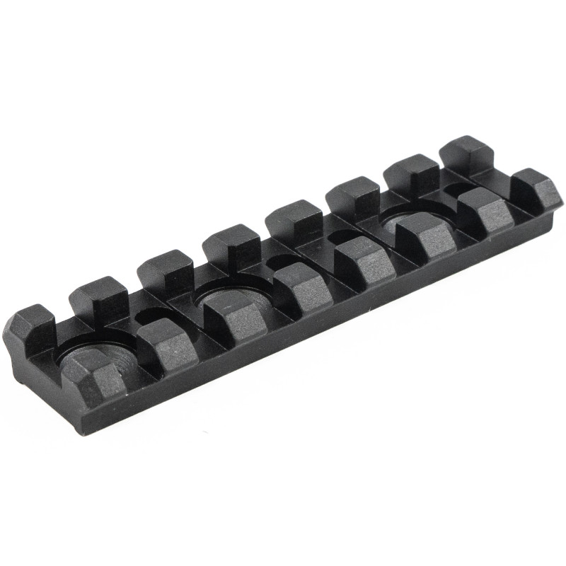 Выполнена из прочного и легкого сплава д16т методом фрезерования. Весит 15 граммов, а высота составляет всего 9 мм, благодаря чему планка не ощущается на оружии и не мешает при его эксплуатации.