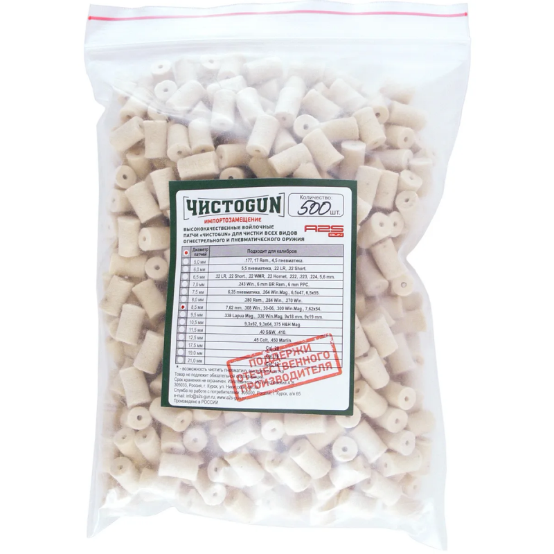 Войлочные патчи калибр 7,62 мм, диаметр 8.5 мм, ЧистоGun (500 шт)