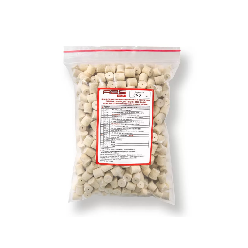 Одноразовые войлочные патчи A2S Gun предназначены для чистки оружейного ствола. Для этого необходимо надеть войлочный патч на адаптер шомпола, пропитать патч чистящим средством, и потом произвести очистку оружия.