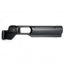 Данный адаптер для складного приклада с интегрированной трубой приклада имеет завышенную ось, что позволяет осуществить более удобную и правильную вкладку при работе с оружием, на котором установлены различные оптические прицельные приспособления. При этом, завышение оси приклада этого адаптера - сохраняет возможность использования штатных прицельных приспособлений вашего АК: целик и мушка без проблем совмещаются (только в случае использования прикладов без дополнительно установленных подщёчников).