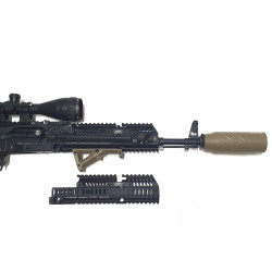 • Комплект оборудован планками Picatinny со всех сторон. Это позволяет установить дополнительный обвес на оружие в любой части цевья.