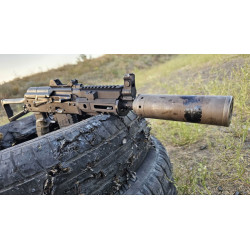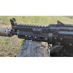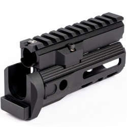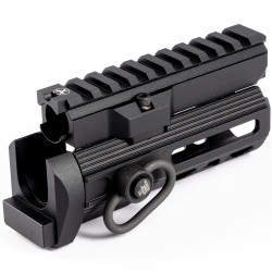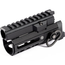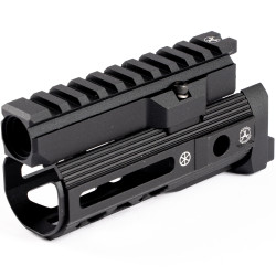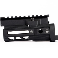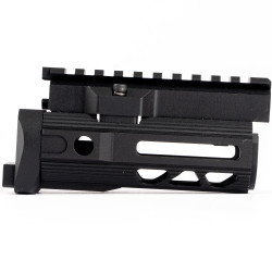 Оборудовано разъемами M-LOK и планкой Picatinny на 10 шагов, что позволяет разместить на ней любой коллиматорный прицел, фонарь и другой обвес.