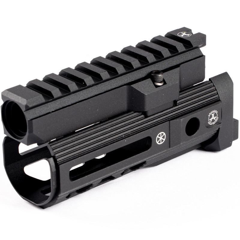 Комплект цевье с газоотводной трубкой, производство компании Armacon. Предназначено для замены штатного цевья на АКС-74У и его гражданских аналогах. Улучшает общую эргономику, повышает удобство эксплуатации оружия и делает вид оружия оригинальным. Образует дополнительную планку Picatinny, что делает оружие функциональнее.