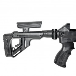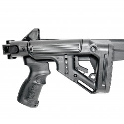 Складной приклад: Ложе FX-UASSKSB оснащено прикладом, который складывается влево для удобной транспортировки и хранения. Приклад легко складывается с помощью кнопки и надежно фиксируется в сложенном положении благодаря пружинной блокировке.