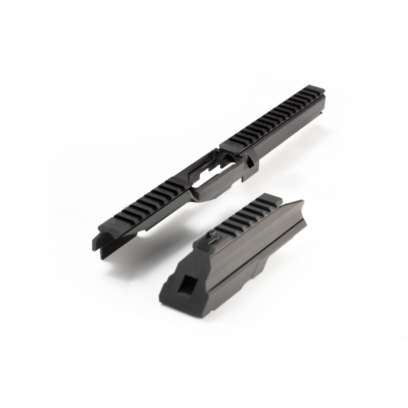 Инновационное решение для улучшения функциональности и универсальности вашего карабина. Включая цевье MK1 с добавлением аппера с интегрированной газовой трубкой и съемной задней крышкой шасси MK3, этот комплект обеспечивает надежную поддержку ствола и возможность установки различных оптических приборов.