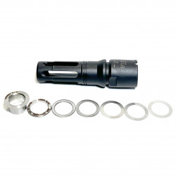 Эффективный пламегаситель из нержавеющей стали с термостойким покрытием, совместимый с АК/Сайга исп. 30/33. Снижает заметность выстрела, приглушает звук и служит платформой для установки быстросъемных ДТК Alfa Arms. В комплекте идет жаропрочный поясок и набор калибровочных шайб для точной установки.