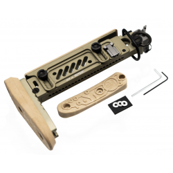 Регулировка: Телескопический механизм приклада позволяет настраивать длину в зависимости от индивидуальных предпочтений. Высота щеки и тыльника легко регулируется с помощью винтов, обеспечивая максимальный комфорт при прицеливании.