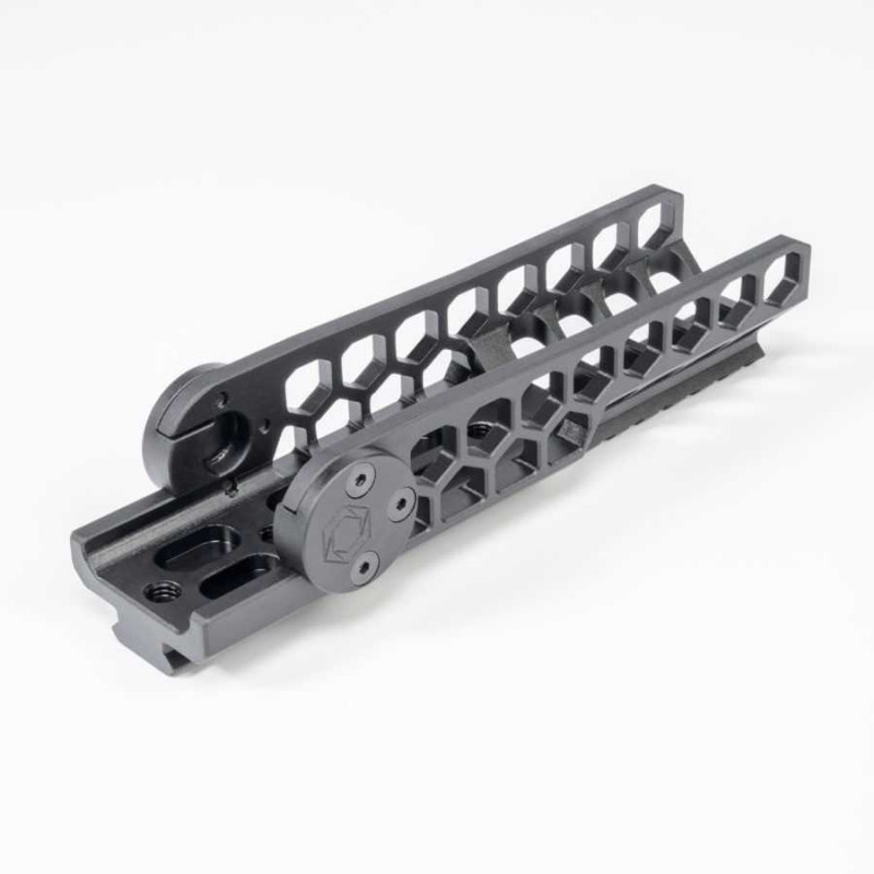 Дополнительные возможности для модернизации: Цевьё позволяет установить дополнительные планки Пикатинни по бокам. Это открывает широкие возможности для монтажа различного оборудования, такого как лазерные указатели, тактические фонари или другие аксессуары.