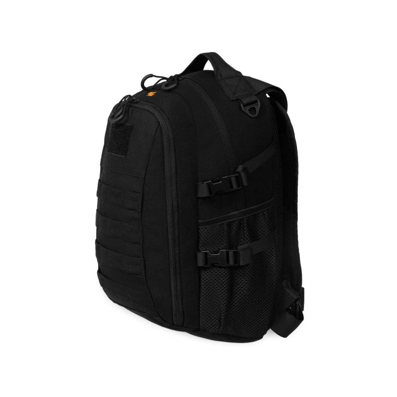 Система MOLLE: На передней панели рюкзака расположена система MOLLE с четырьмя стропами, разделёнными на секции. Это позволяет легко крепить дополнительное снаряжение, увеличивая функциональность рюкзака.