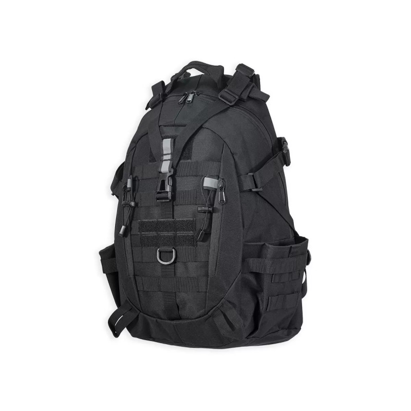 Система MOLLE: На передней и боковых сторонах рюкзака расположена система MOLLE, позволяющая закрепить дополнительные подсумки или снаряжение. Эластичные шнуры и нейлоновые петли дают возможность надежно фиксировать оборудование, что особенно полезно в походах или на активном отдыхе.