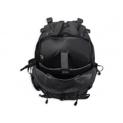 Удобная организация пространства: Основное отделение оснащено большим карманом с амортизирующей прокладкой, подходящим для ноутбука, планшета или гидратора. На фронтальной части расположены два кармана с вертикальными молниями, а боковые карманы с утягивающими стропами идеально подходят для бутылок или термокружек.