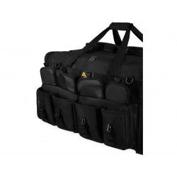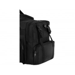 Карманы и отделения: Сумка оснащена основным отделением с жёсткой съёмной вставкой, двумя боковыми отделениями на молнии, двумя передними карманами, четырьмя внешними карманами с фастекс-застёжками и двумя карманами на верхней крышке.