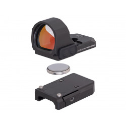Широкое поле зрения и скорость прицеливания Прицел оснащён большим окном размером 26x22 мм, что обеспечивает отличное поле зрения. Это особенно важно для стрельбы на ближних и средних дистанциях, где каждая секунда имеет значение. Тонкие стенки корпуса (всего 2 мм) не ограничивают обзор и позволяют стрелять, не закрывая второй глаз, что увеличивает точность и скорость реакции.