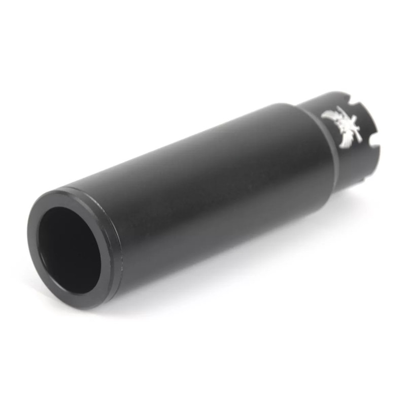 Компактные размеры и удобство установки: Общая длина пламегасителя составляет 120 мм, а диаметр широкой части — 36 мм. Такие параметры обеспечивают оптимальное сочетание функциональности и компактности. Резьба M24x1.5 правая гарантирует легкость установки и надежную фиксацию устройства.
