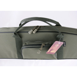 Чехол оснащен регулируемым ремнем, который позволяет носить его как на плече в вертикальном положении, так и в руках в горизонтальном. Это делает транспортировку более комфортной, особенно при длительных переходах. Также на чехле предусмотрена петля для подвешивания, что упрощает его хранение.