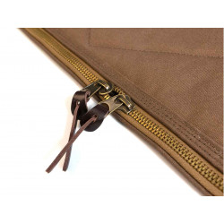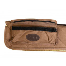 Чехол выполнен из хлопка, что обеспечивает его долговечность и устойчивость к износу. Внутренний слой заполнен пеной, которая эффективно защищает оружие от ударов и повреждений во время транспортировки. Дополнительно нос чехла укреплен кожей, что повышает его износостойкость в наиболее уязвимых местах.