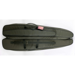 Чехол выполнен из капрона – синтетической ткани, известной своей износостойкостью и устойчивостью к внешним воздействиям. Внутри он дополнен поролоновым слоем и мягкой тканевой подкладкой, что обеспечивает надежную защиту ружья от ударов, царапин и влаги. Это особенно важно при транспортировке оружия в условиях дикой природы или на охоте.
